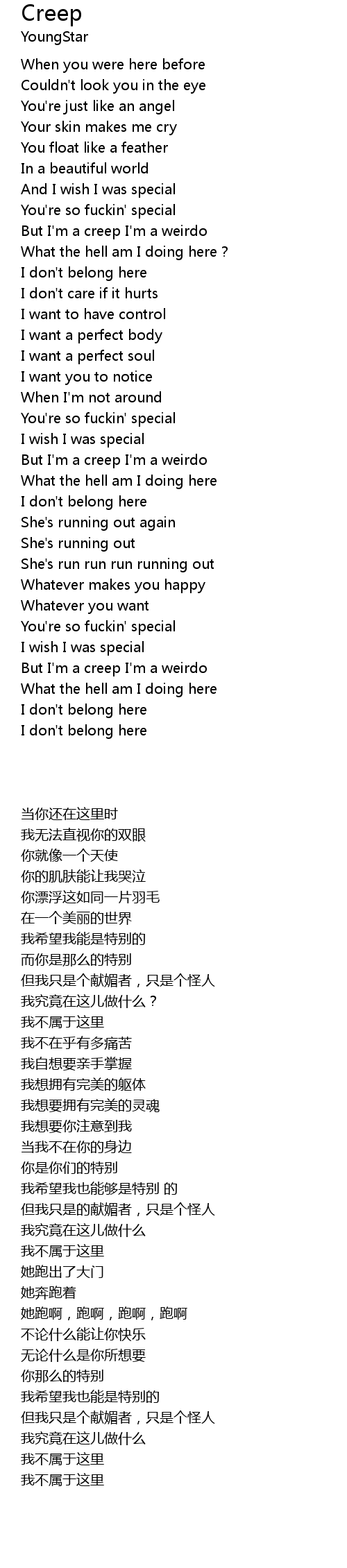 | [03:25.810] | But I'm a creep I'm a weirdo |