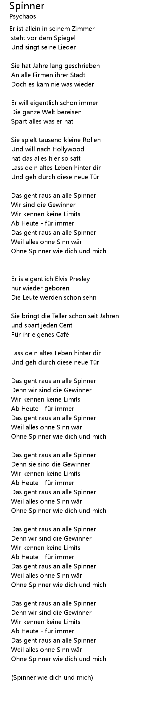 | (Spinner wie dich und mich) |