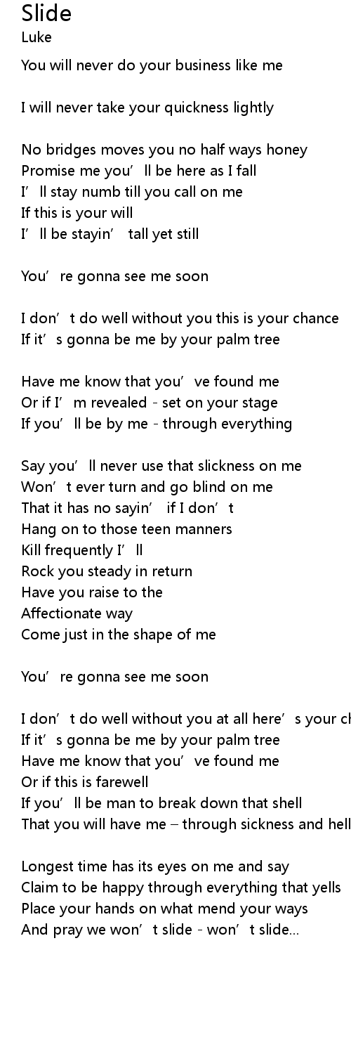 | And pray we won' t slide won' t slide... |