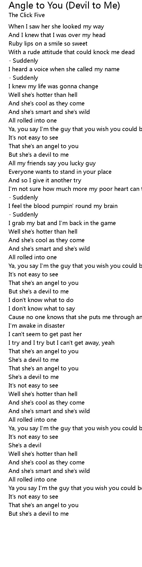 But she's a devil to me |