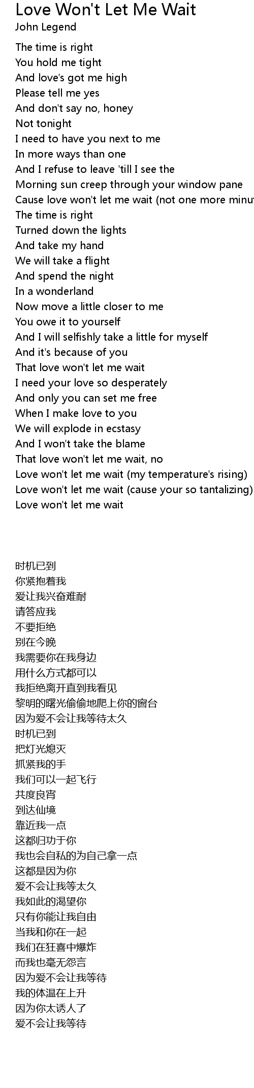 Cause love won't let me wait (not one more minute, baby) |