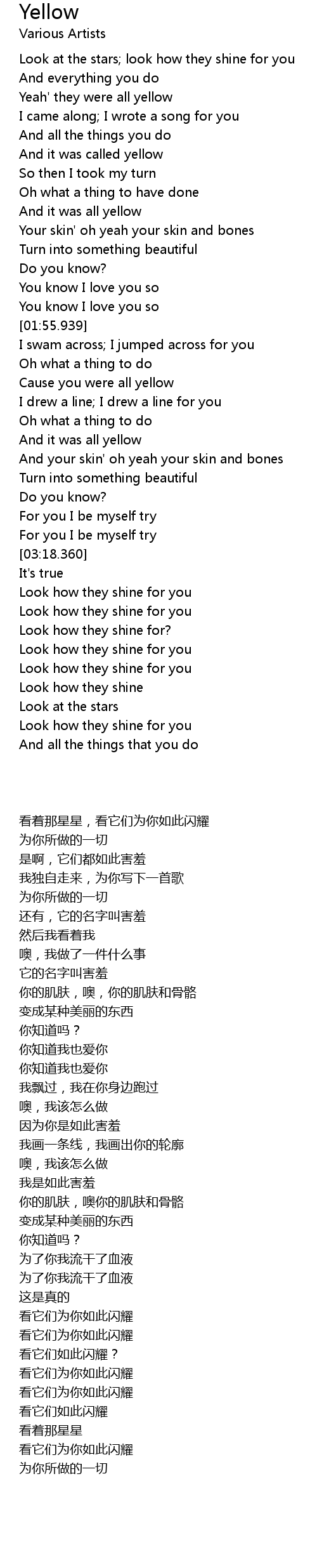 | [02:31.140] | Cause you were all yellow |