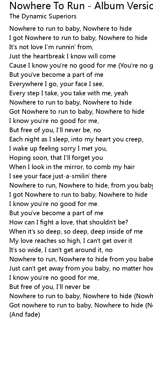 Nowhere to run to baby, Nowhere to hide (Nowhere to hide) |