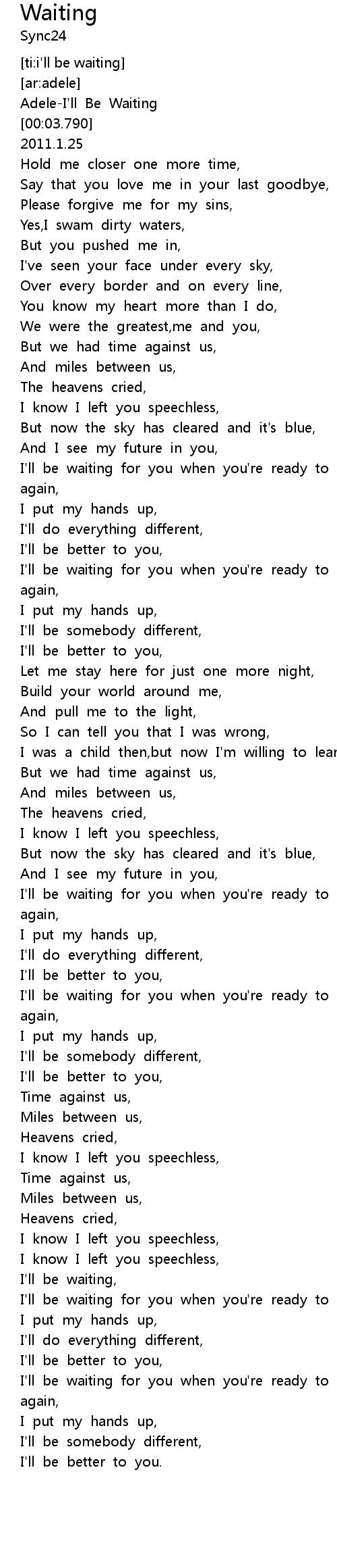 | [01:44.790] | I'll be waiting for you when you're ready to love me again, |