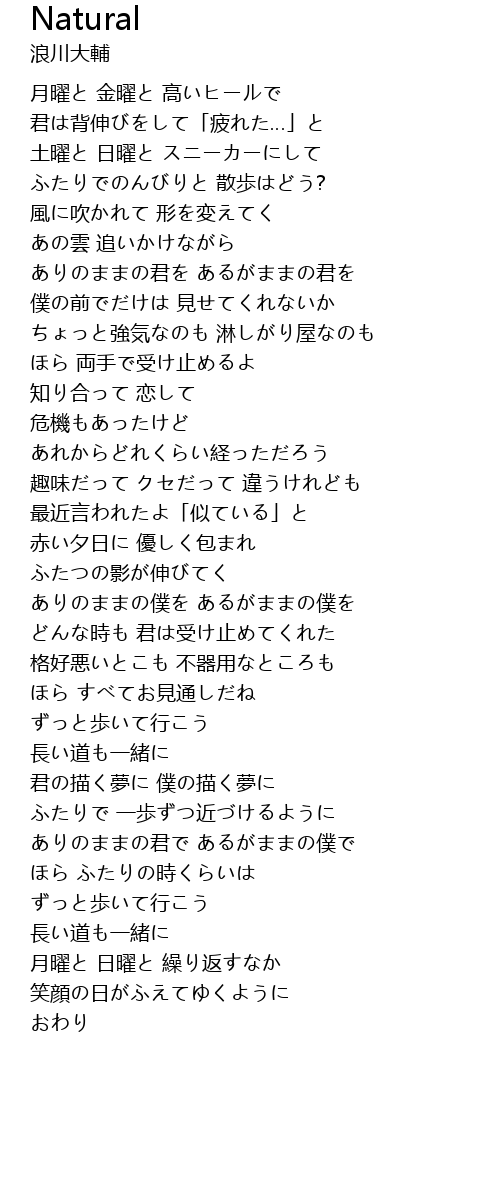 | [02:10.54] | ありのままの僕を あるがままの僕を |