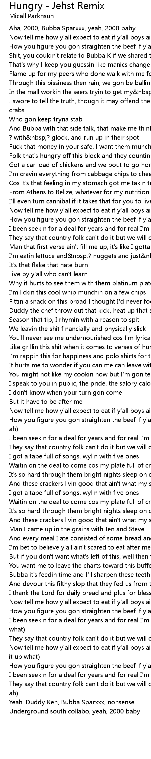 Hungry - Jehst Remix Lyrics