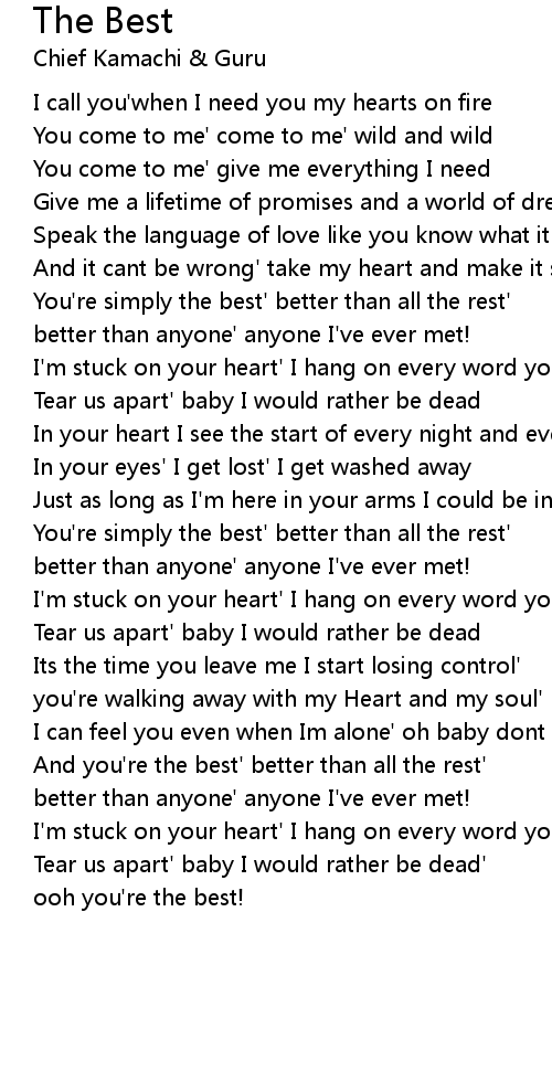 You're simply the best' better than all the rest' |