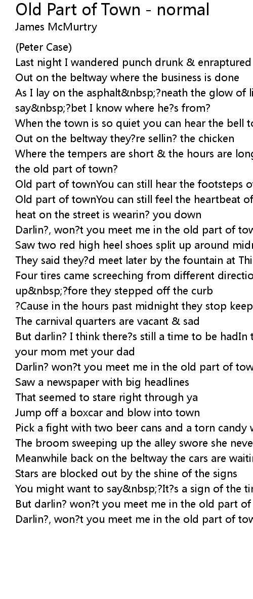 Where the tempers are short & the hours are longDarlin?, won?t you meet me in the old part of town?