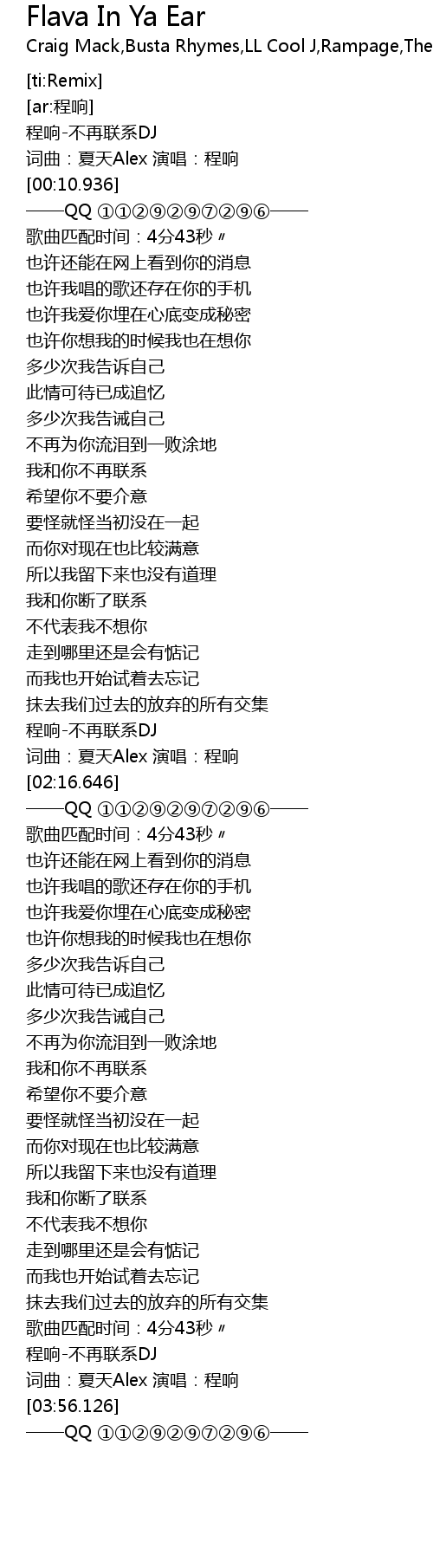 | [02:05.685] | 程响-不再联系DJ |