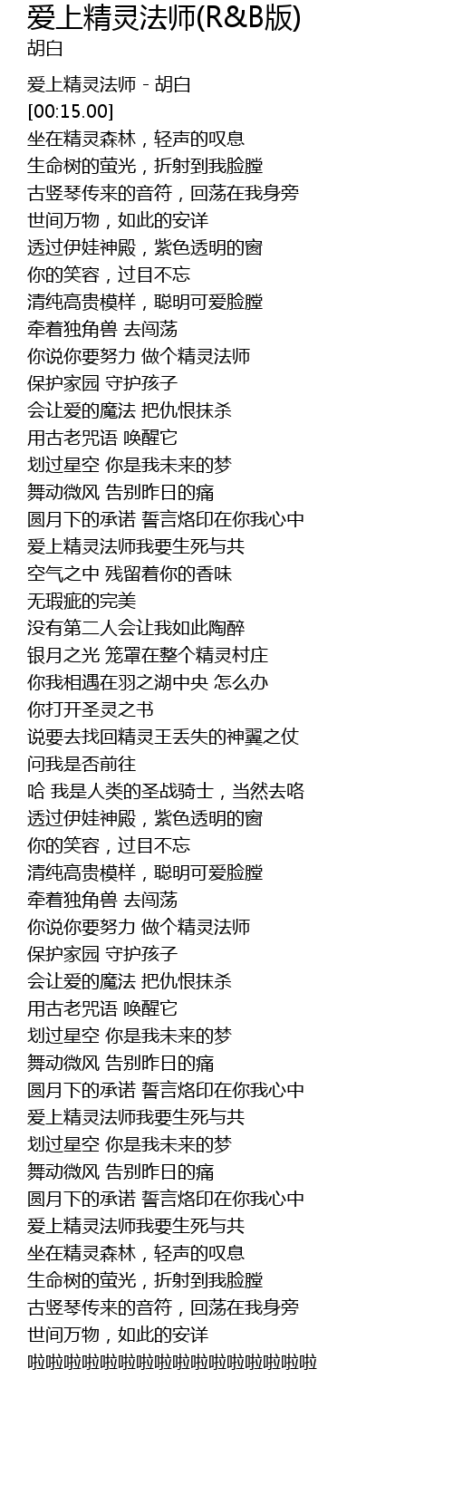 | [00:02.00] | 爱上精灵法师 - 胡白 |
