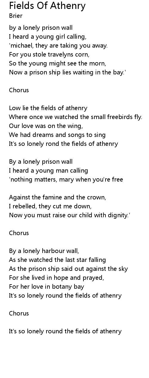 It's so lonely rond the fields of athenry |
