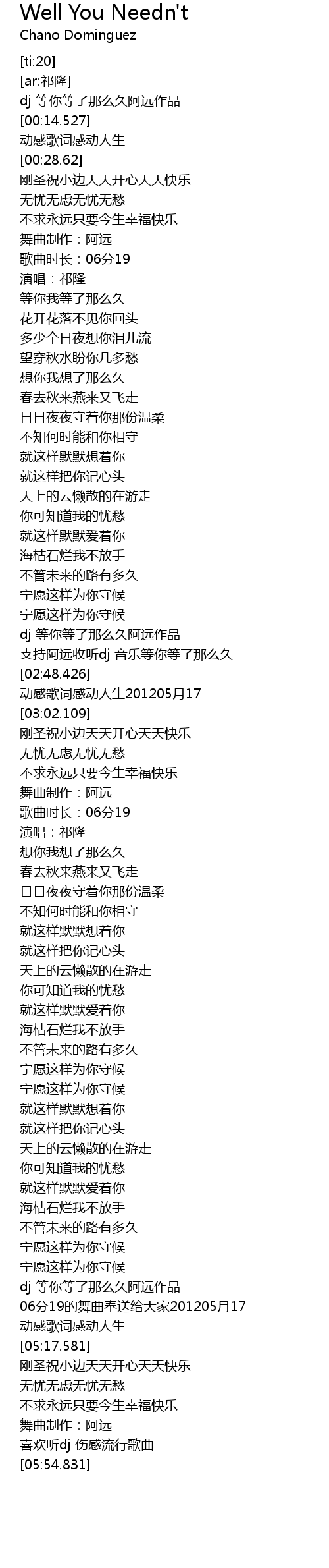 | [00:01.147] | dj děng nǐ děng le nà me jiǔ ā yuǎn zuò pǐn |