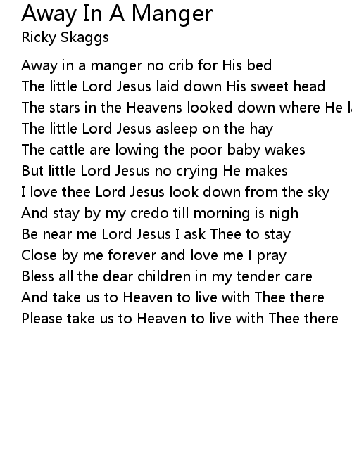 Away in a manger no crib for His bed |