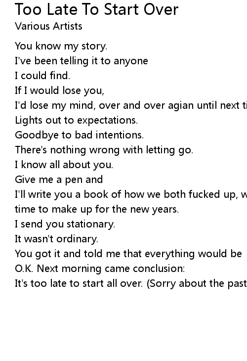 I'll write you a book of how we both fucked up, walked away, got back just in time to make up for the new years. |