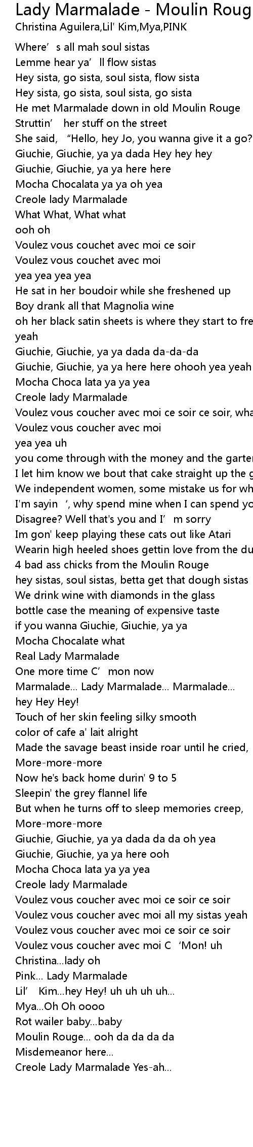 | Song | Lady Marmalade - Moulin Rouge/Soundtrack Version |