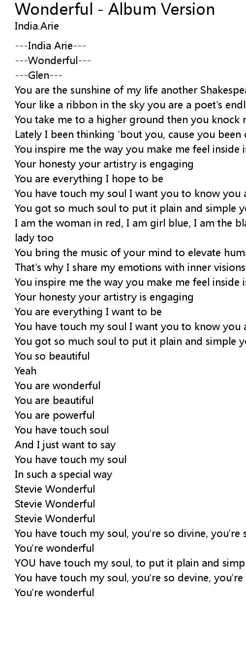 YOU have touch my soul, to put it plain and simple you are wonderful |