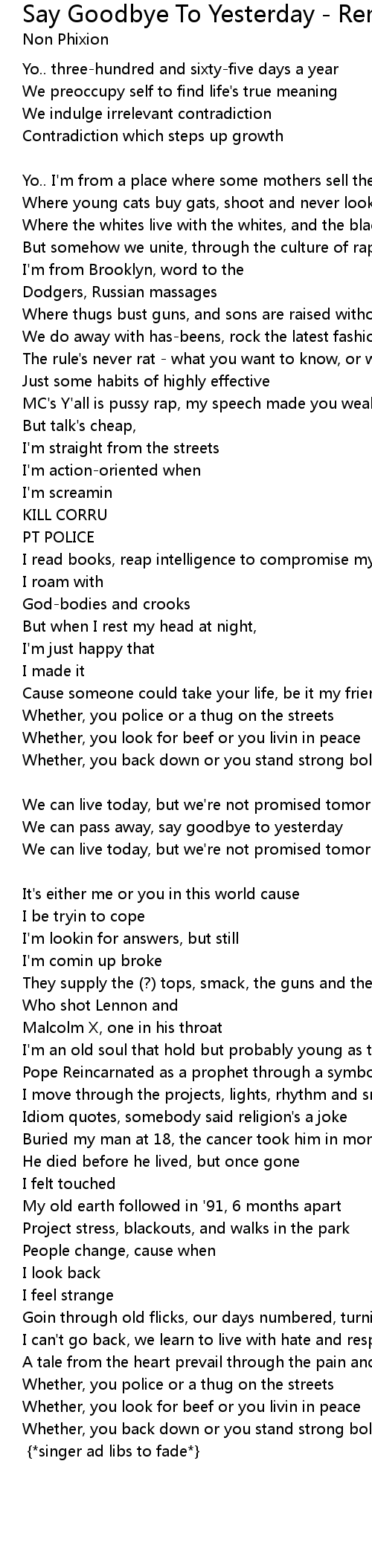 Yo we never know what tomorrow gon' hold [Chorus] {*singer ad libs to fade*}