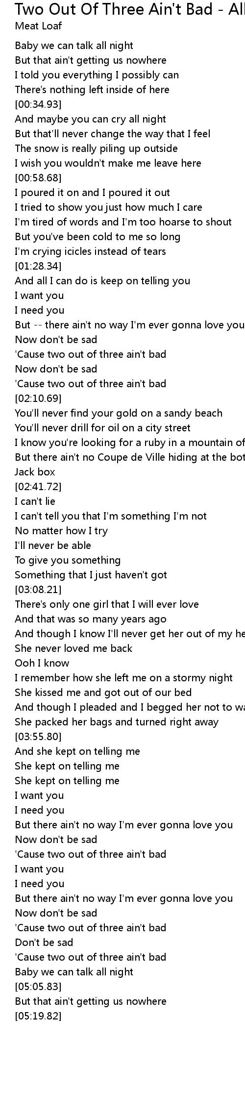 'Cause two out of three ain't bad |