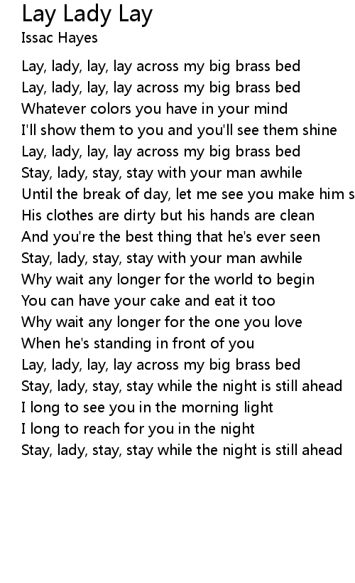 Lay, lady, lay, lay across my big brass bed |