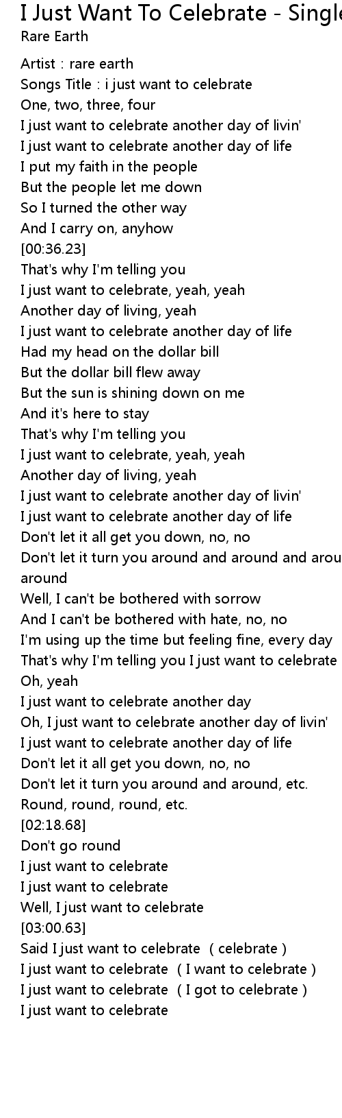 | [03:15.66] | I just want to celebrate (I got to celebrate) |