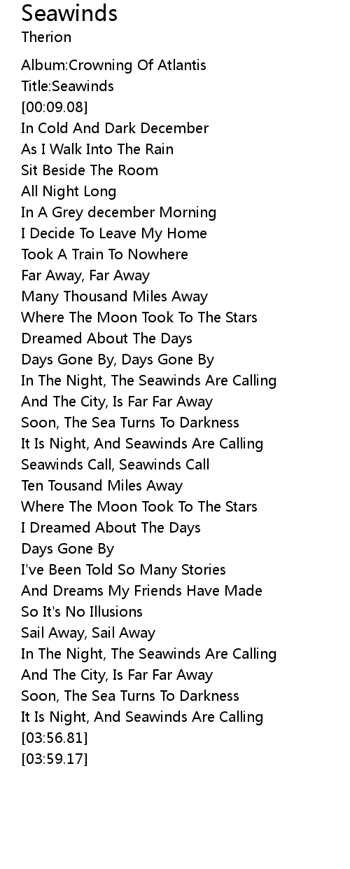 In The Night, The Seawinds Are Calling |