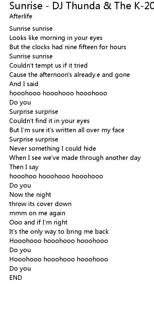 Sunrise - DJ Thunda & The K-20 Allstars Remix Lyrics