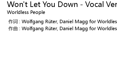 | Song | Won't Let You Down - Vocal Version |