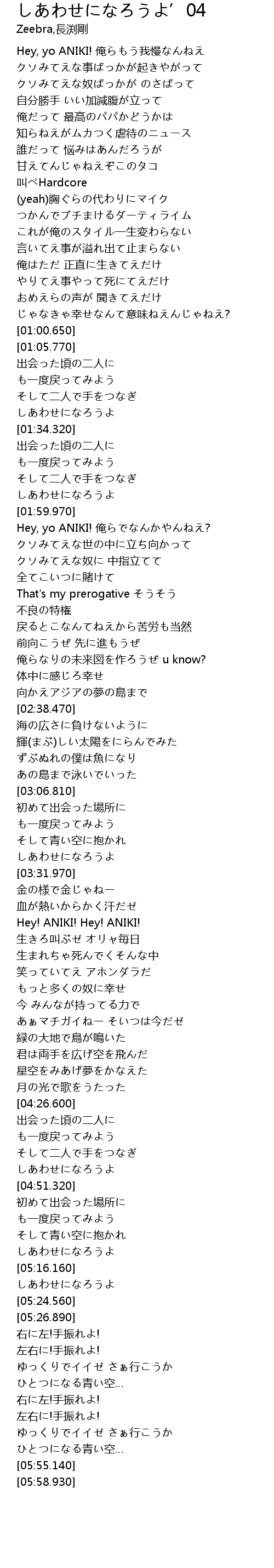 | [00:06.670] | Hey, yo ANIKI! an wo man |