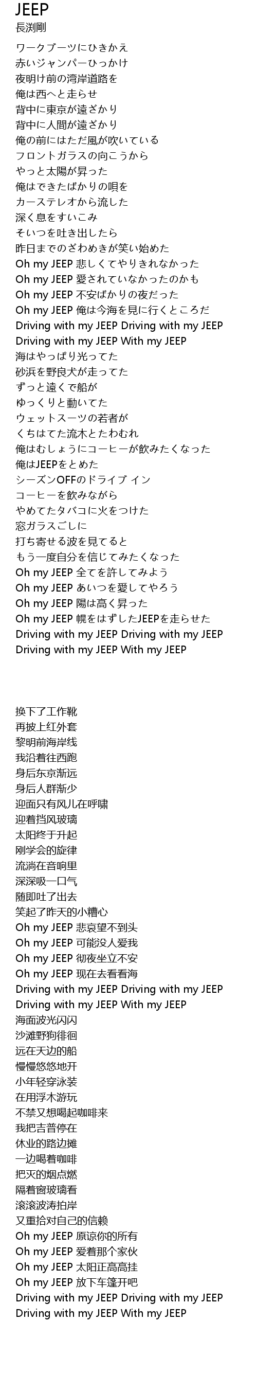 | [02:24.75] | Oh my JEEP 全てを許してみよう |
