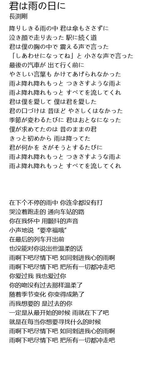 | [00:18.952] | 降りしきる雨の中 君は傘もささずに |
