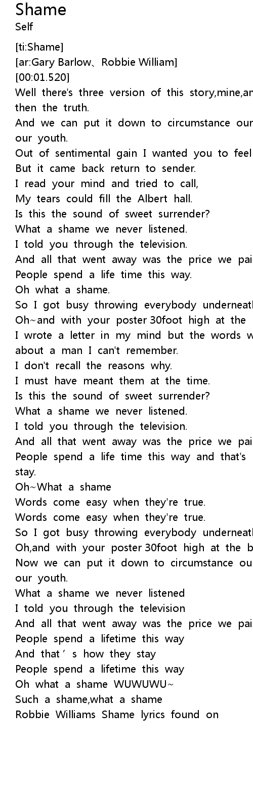 | [03:47.938] | Robbie Williams Shame lyrics found on |