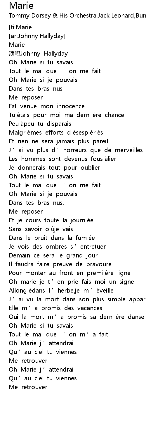 | [01:33.970] | Oh Marie si je pouvais |