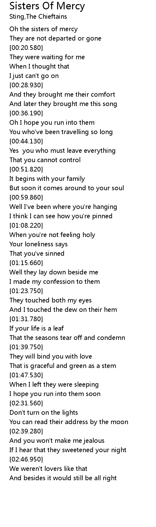 Oh the sisters of mercy |