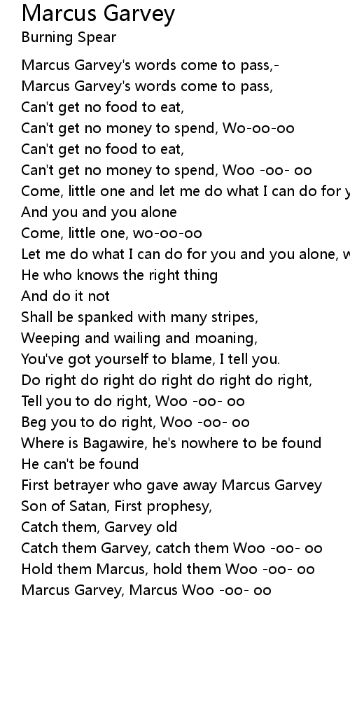 Marcus Garvey, Marcus Woo -oo- oo |