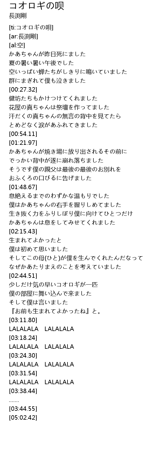 | [01:23.75] | かあちゃんが焼き場に放り出されるその前に |