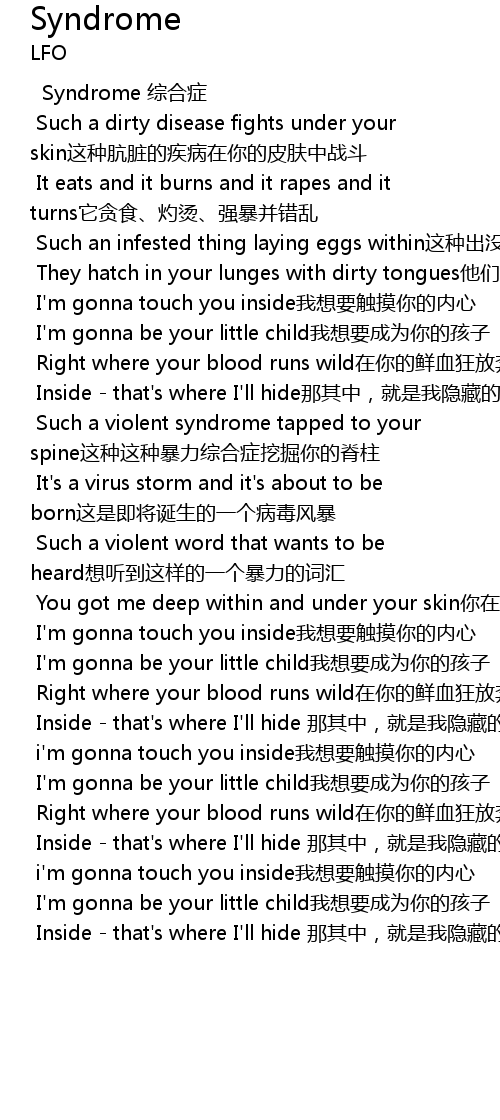 | Such a violent syndrome tapped to your spine这种这种暴力综合症挖掘你的脊柱 | |