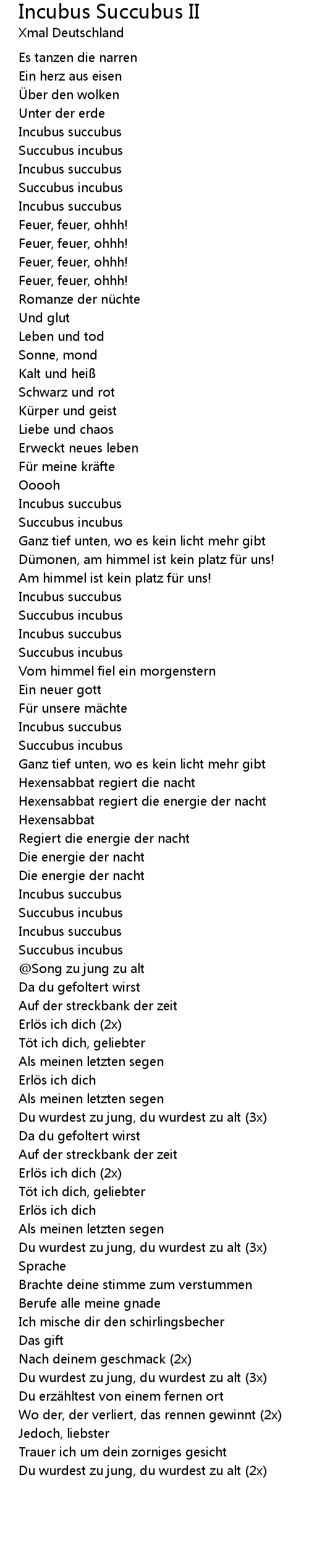 | Du wurdest zu jung, du wurdest zu alt (3x) | |