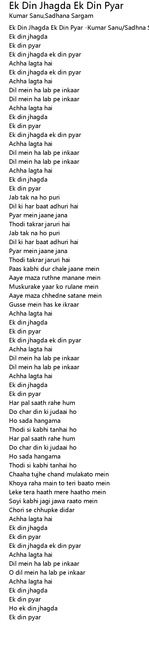 Ek Din Jhagda Ek Din Pyar -Kumar Sanu/Sadhna Sargam |