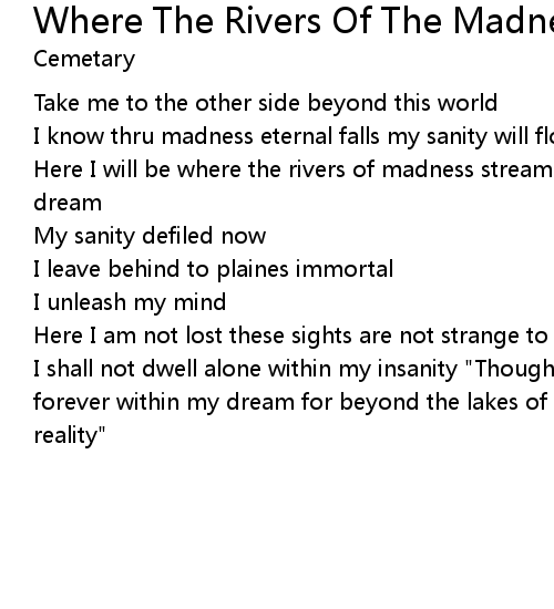 | Here I will be where the rivers of madness stream down the gules to a pit of dream | |