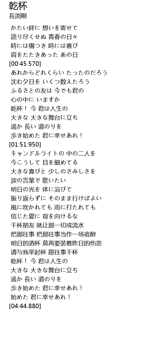 | [03:52.630] | 乾杯! 今 君は人生の |
