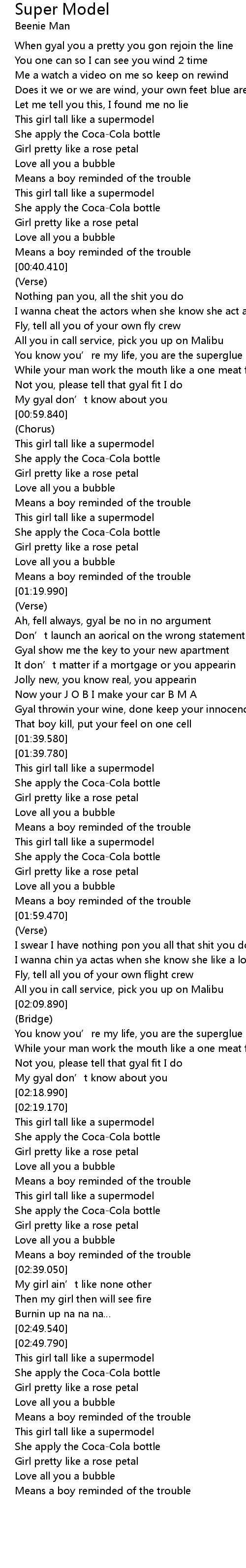 | [02:59.120] | This girl tall like a supermodel |