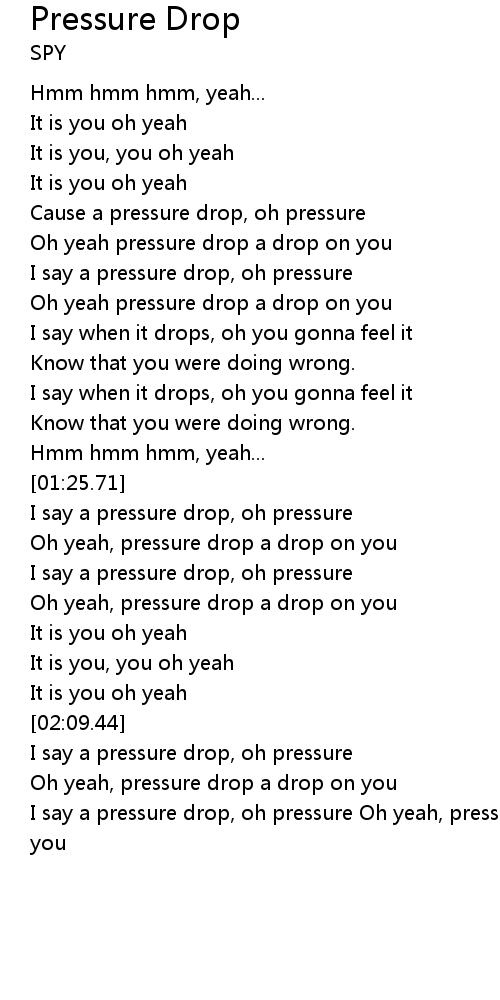 I say a pressure drop, oh pressure Oh yeah, pressure drop a drop on you |