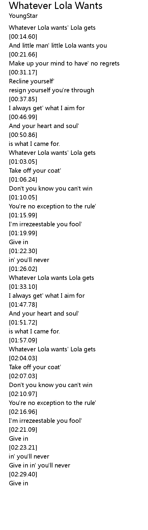 Whatever Lola wants' Lola gets |