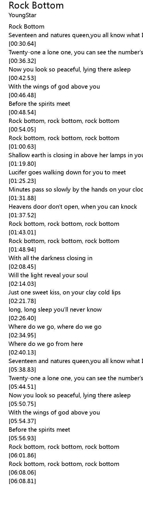 Rock bottom, rock bottom, rock bottom |