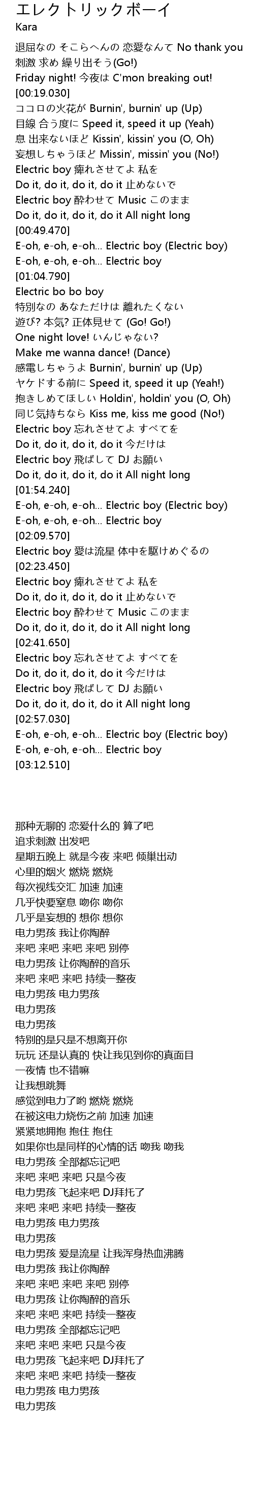 | [02:57.440] | E-oh, e-oh, e-oh... Electric boy (Electric boy) |