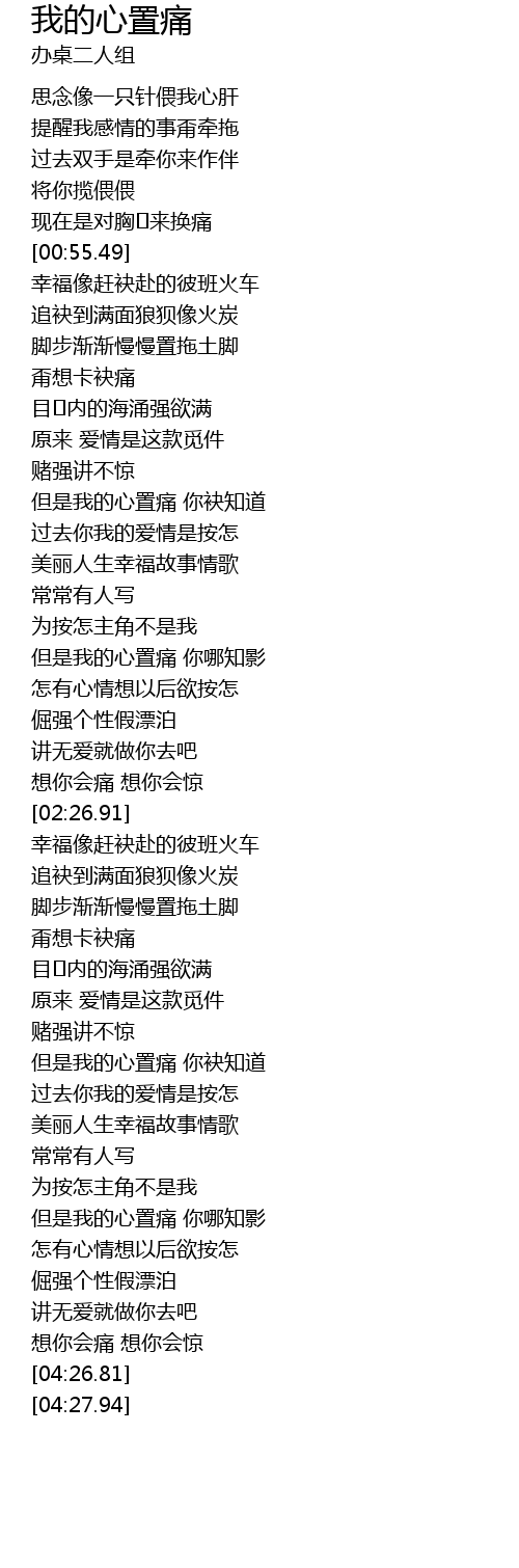 | [04:01.23] | 但是我的心置痛 你哪知影 |