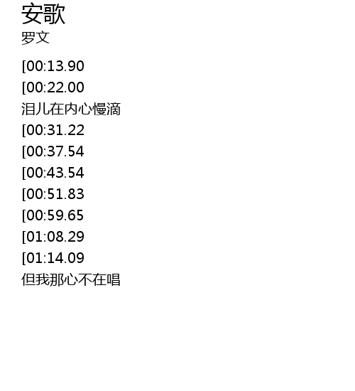 | [02:52.36][01:14.09] | 但我那心不在唱 扮作笑脸心欢畅 但我那心不在唱 |
