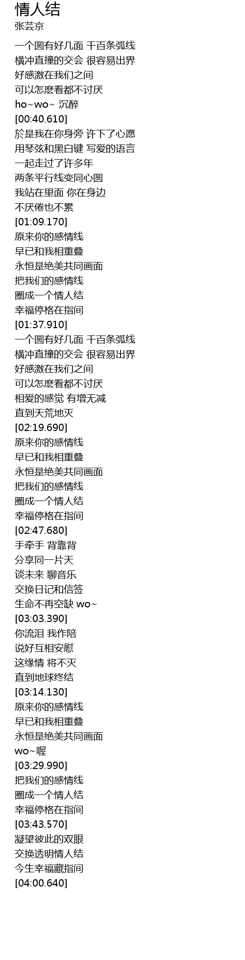 | [03:34.900] | 圈成一个情人结 |