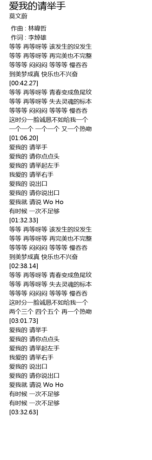 | [03:02.47] | ài wǒ de qǐng jǔ shǒu |