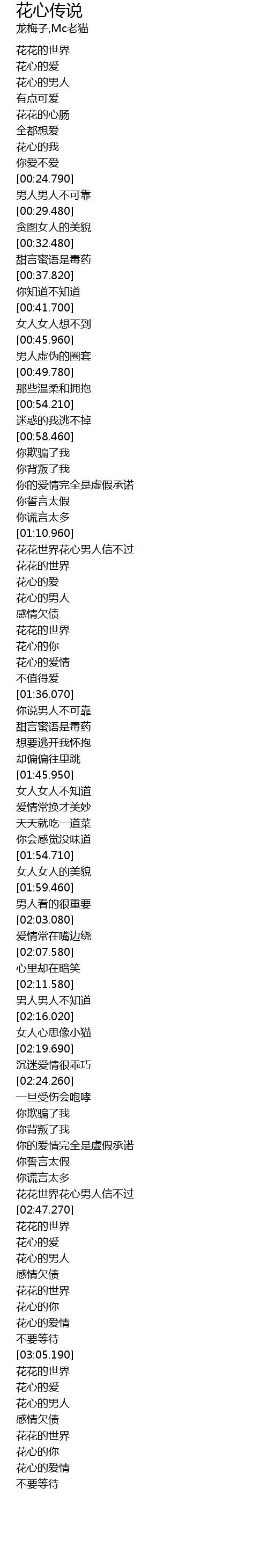 | [02:41.320] | huā huā shì jiè huā xīn nán rén xìn bù guò |